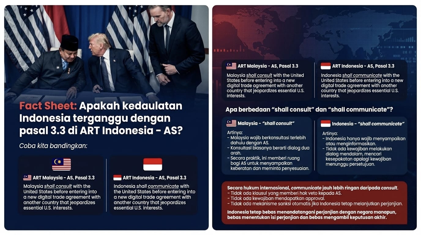 - Tidak ada mekanisme sanksi otomatis jika Indonesia tetap melanjutkan perjanjian.
