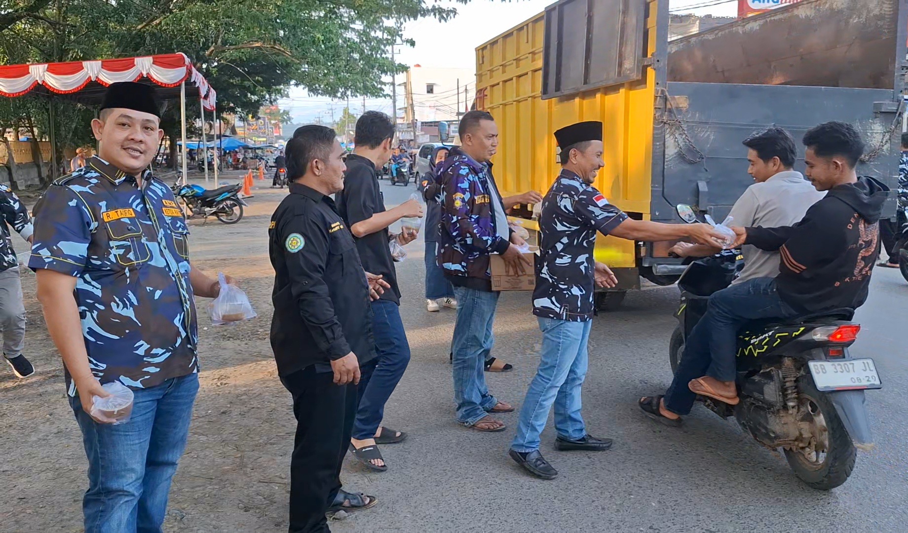 Kegiatan pembagian takjil berlangsung dengan tertib dan penuh kehangatan. Para pengurus AMPI tampak antusias menyapa masyarakat sambil membagikan paket takjil kepada pengendara roda dua maupun roda empat yang melintas.